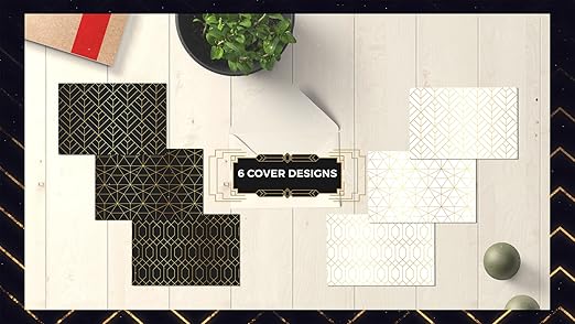 6 COVER DESIGNS – Six geometric cover designs in gold foil, 3 with black backgrounds, 3 with white backgrounds