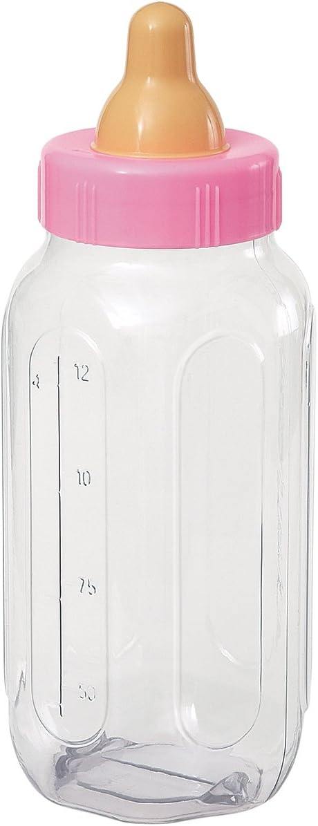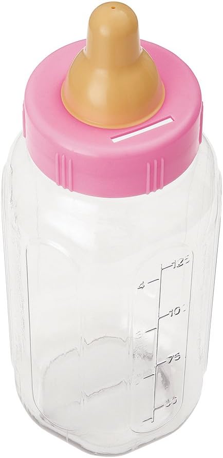 FUN DESIGN Make a charming addition to your decoration with this bottle that features a baby feeding bottle design with a pink lid and a slit for sliding in coins.