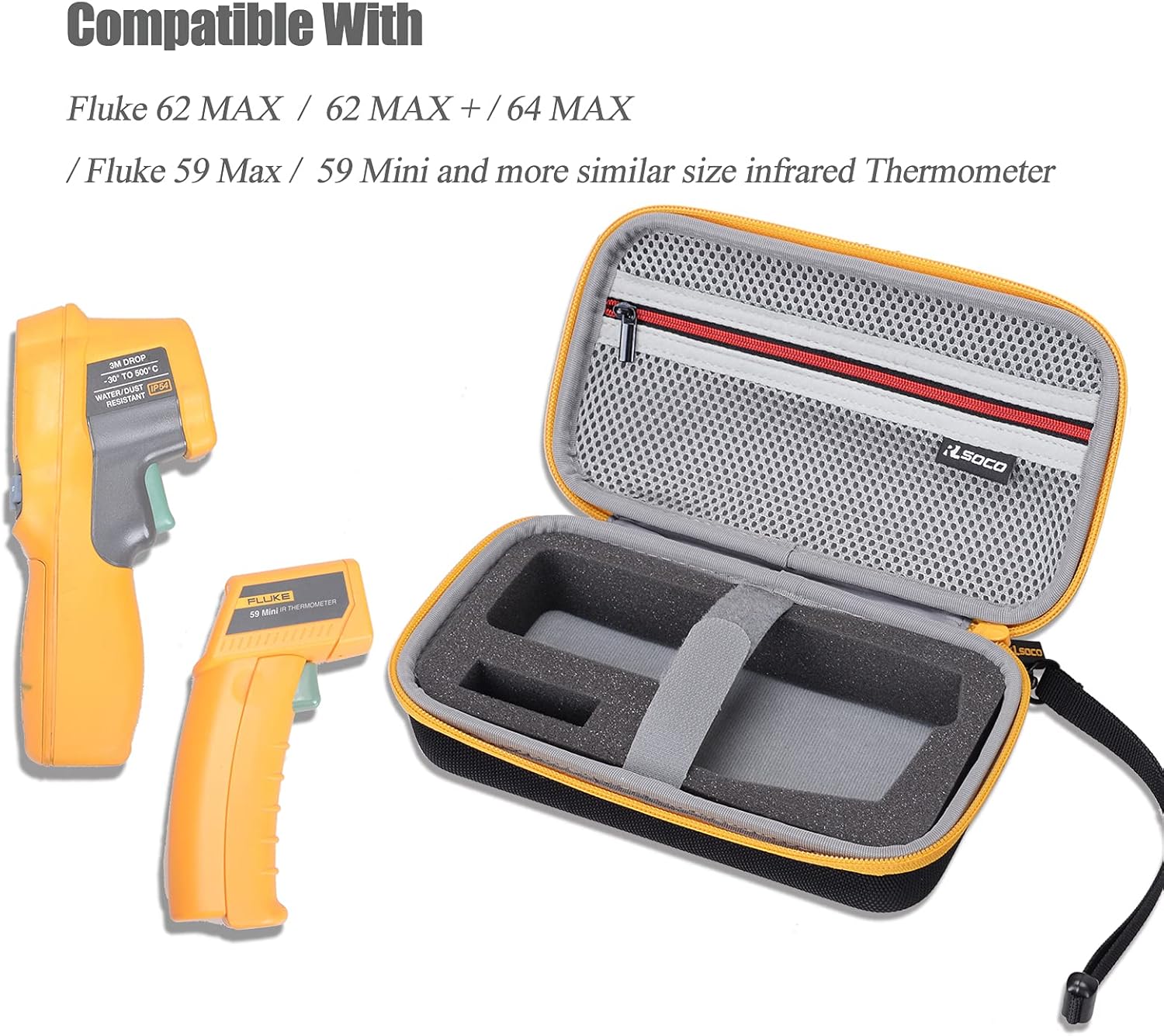 ►Compatibility With — This hard travel case is compatible with Fluke 62 Max/62 Max+/59 Max+/59 Mini/59 Max/64 Max/ST20 Max/PerfectPrime IR0001 Infrared Thermometer (For Sale Case ONLY, Thermometer and accessories are not included)