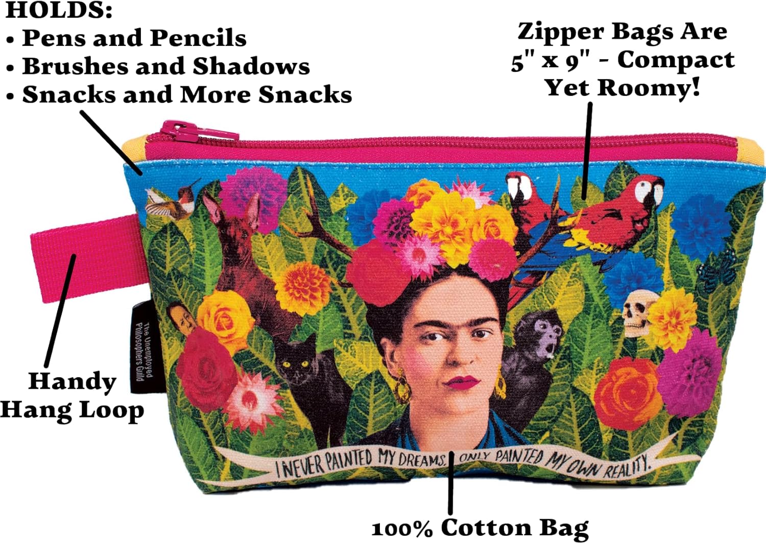 The Unemployed Philosophers Guild Frida Kahlo Bag – 9 Canvas Art Themed Zipper Pouch for Pencils, Tools, Cosmetics, Toiletries and More