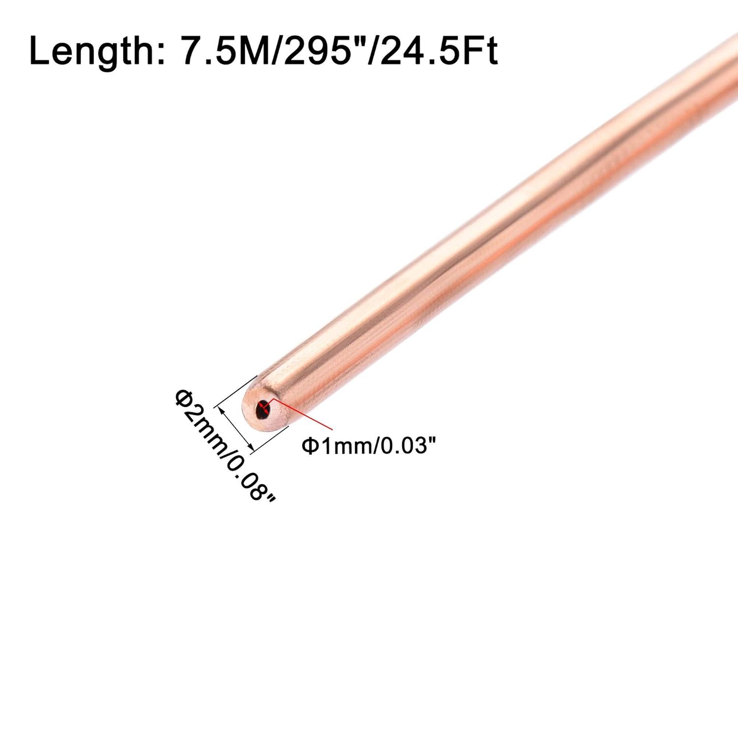 uxcell Refrigeration Tubing 2mm OD x 1mm ID x 24.5Ft Length Copper Tubing Coil